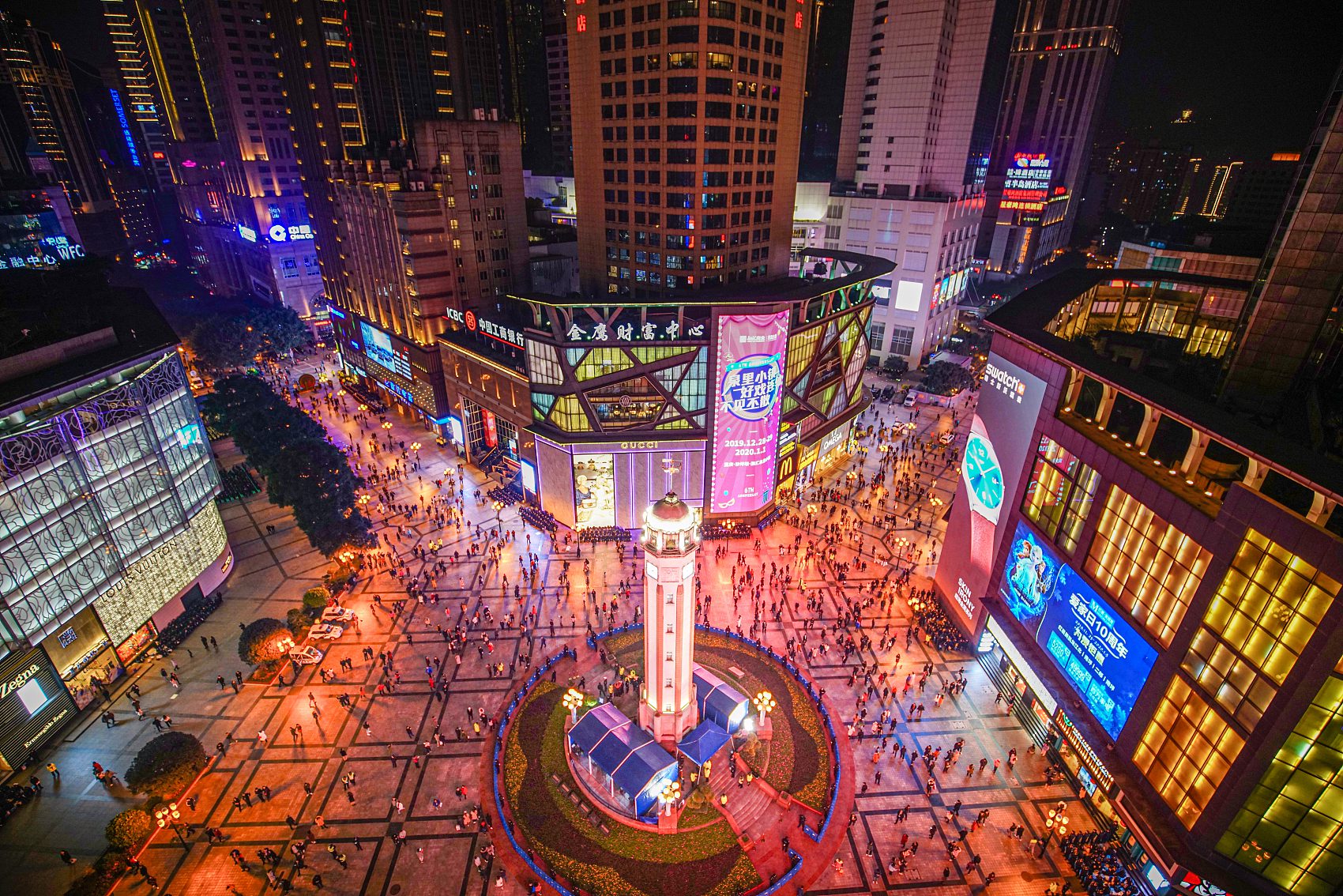 Jiefangbei Pedestrian Street - a bustling commercial street in downtown Chongqing and a trendy landmark, a great place for shopping and dining.