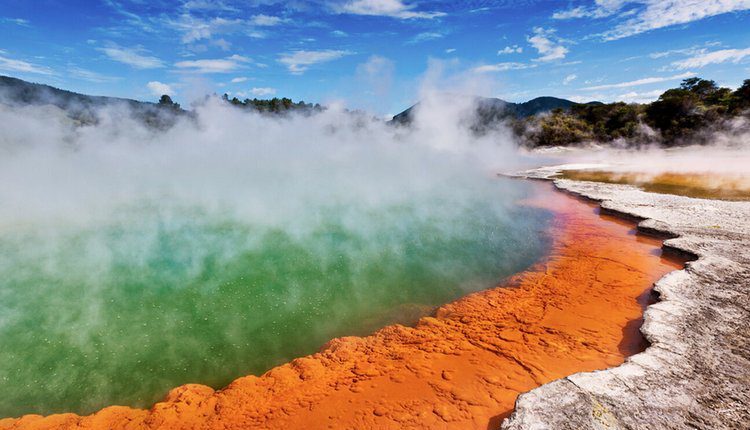 • Visit Rotorua's most popular geothermal parks. At Wai-O-Tapu Thermal Wonderland, the amazingly colourful hot springs and moon-like landscapes are key features.
