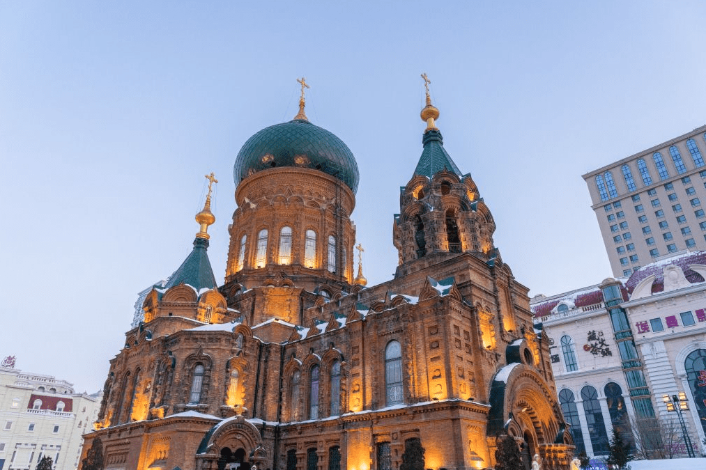 View the exterior of St. Sophia Cathedral Square. St. Sophia Cathedral is the largest brick-and-wood structure in East Asia in Harbin's eastern district and a landmark of the city.