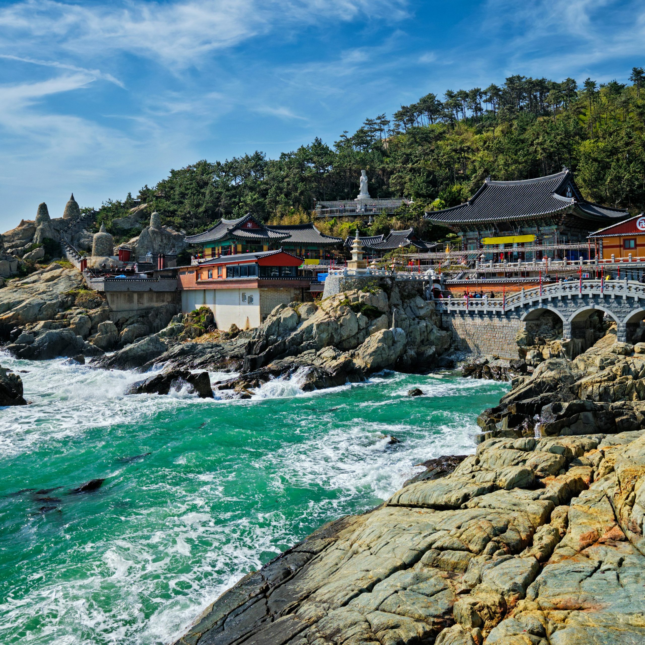 • Busan • Oryukdo Skywalk / Yongdusan Park / Haedong Yonggungsa Temple / Haeundae Coastal Train / Gamcheon Cultural Village / Busan's Seomyeon Shopping District / Matsushima Ryugu Cloud Bridge